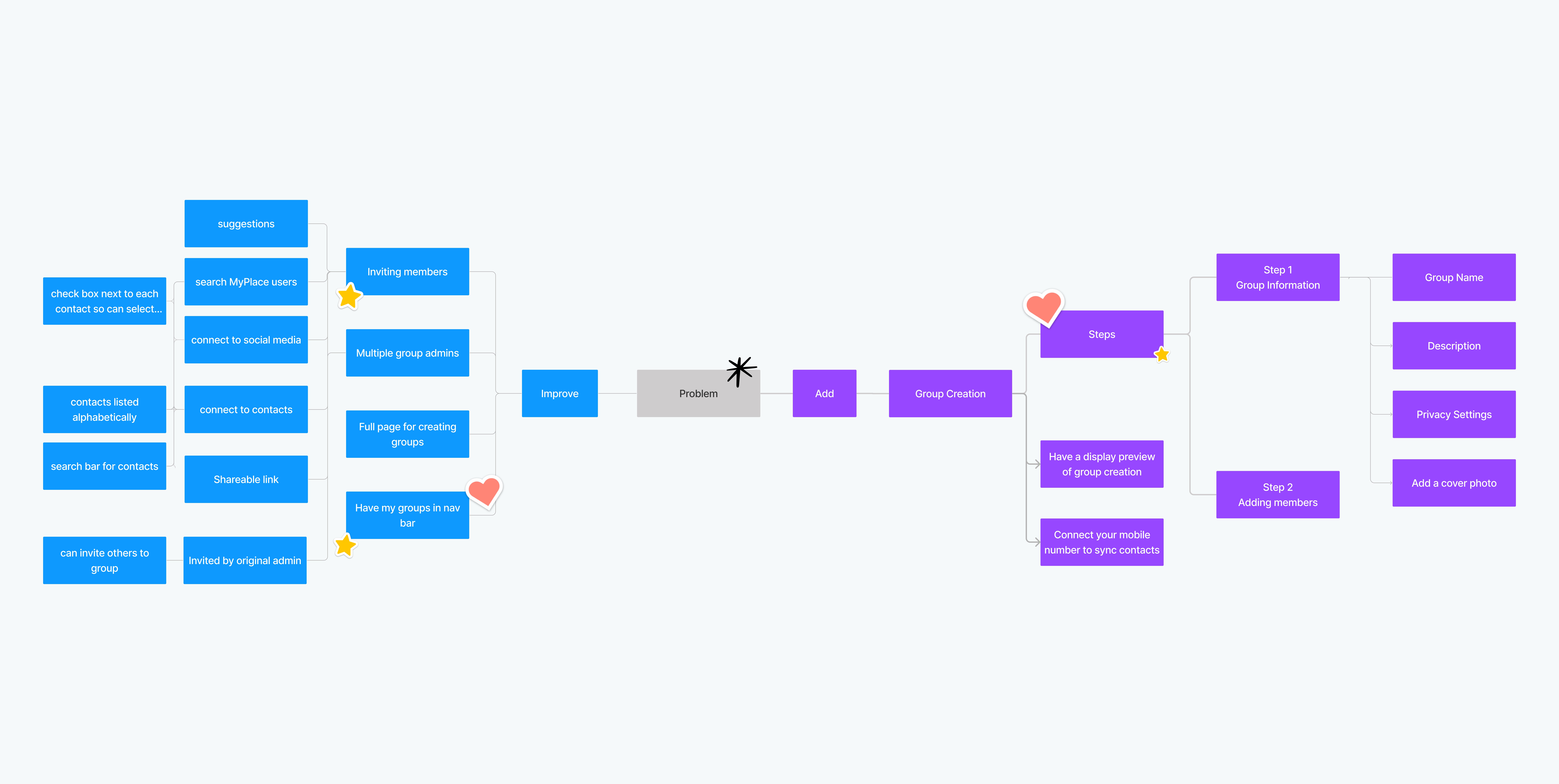 Currently MyPlace doesn't have the ability for users to create their own groups. Currently, the team at MyPlace can create a group for you, and give admin privileges to one person to manage the group.